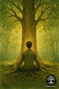 Ara ets un arbre. Ets arrels, tronc, i branques i rames i fulles. Ets passat, present i futur. Ets un ésser renovat. Ets un ésser en equilibri. El teu esperit està ple a vessar de la llum de l’abisme i de la llum celestial. Ets present entre dos pols d’energia: la del Pare i la de la Mare, la del Sol i la de la Terra, la del cap i la del ventre, la del Gran Déu i la de la Gran Deessa.